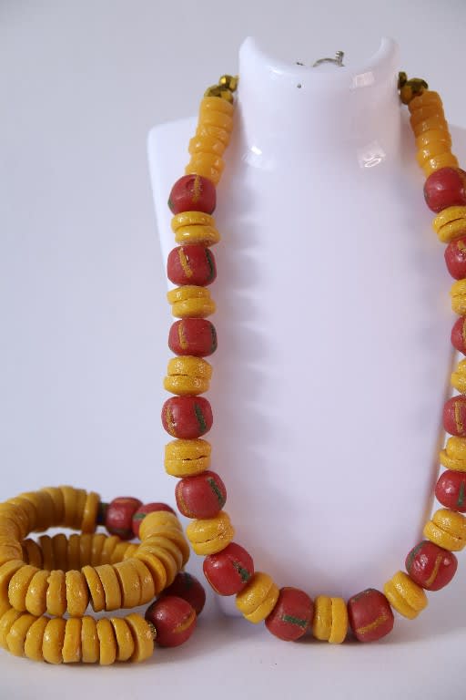 Sunroot Grove – Red & Yellow Bead Jewellery Set (Nkasa)